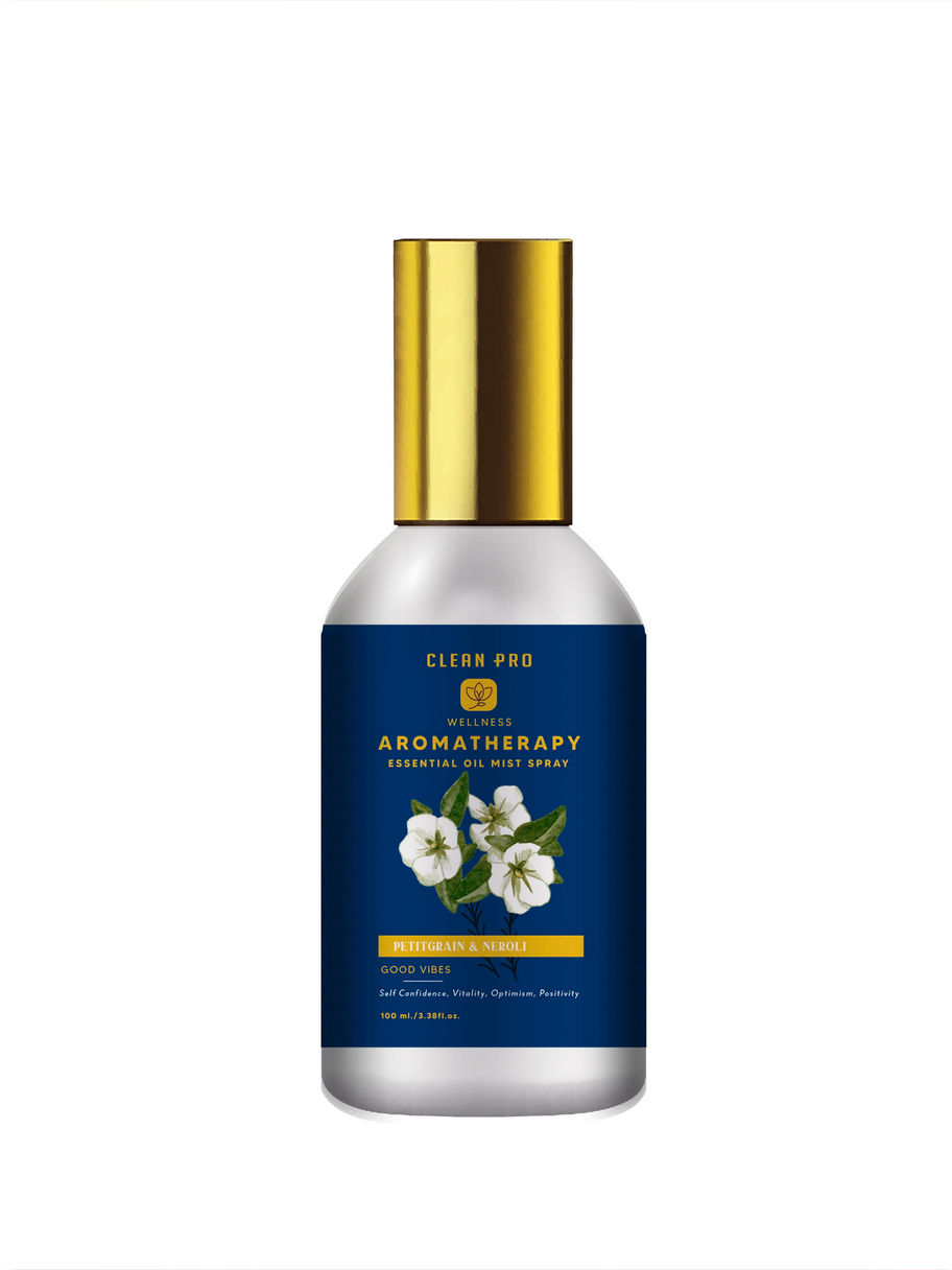 - DESCRIPTION: Clean Pro Wellness Aromatherapy Essential Oil Mist hormonizes physical & mental health with the power of scent. It helps regulate feelings, improve mood & overall well-being. Made with the good stuff, Pure Essential Oils, Vitamin E & Aloe Vera. Mist on face & body or use as a room & linen spray. Scent: Good Vibes, Love & Kiss, Active Detox, Energize, Meditate, Night Power